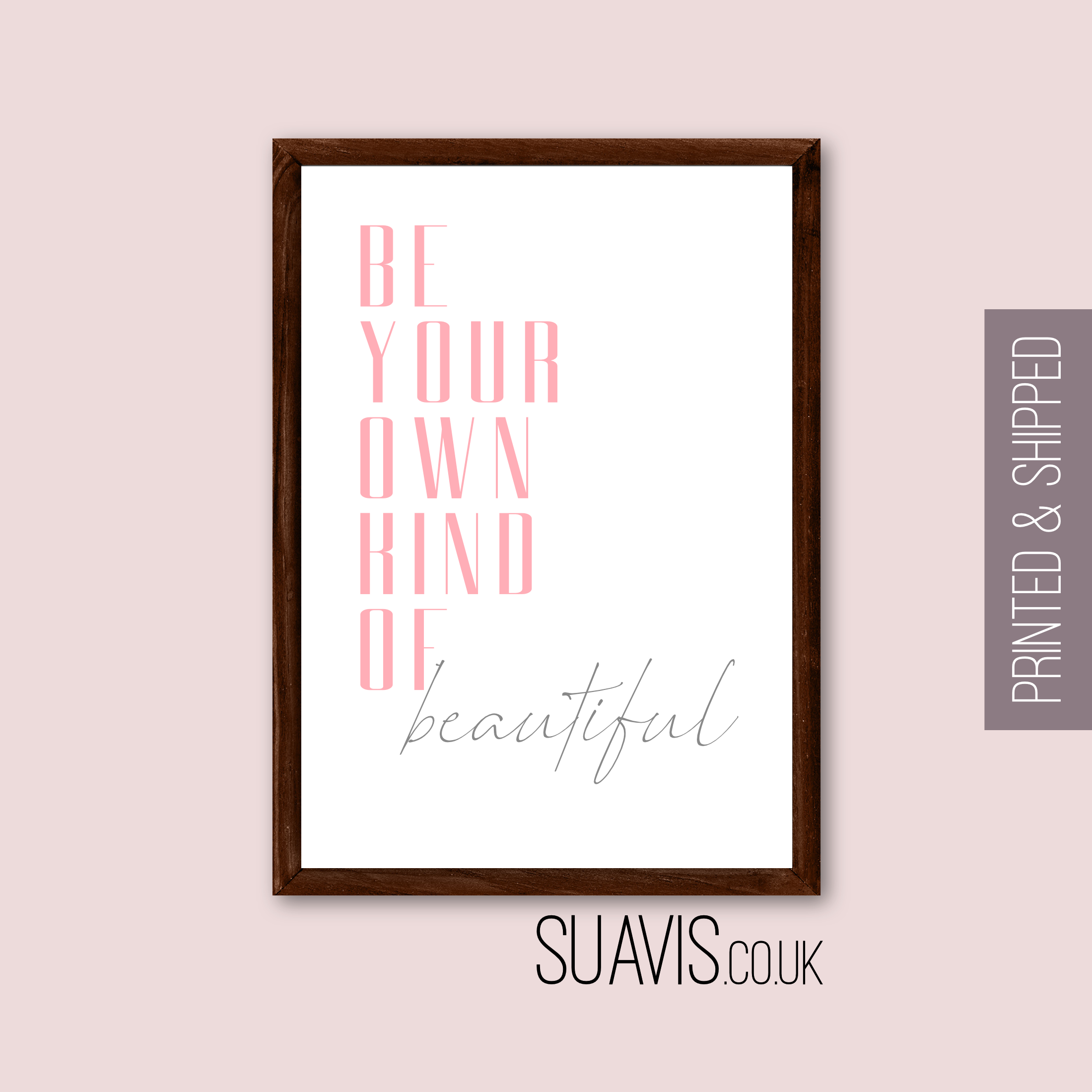Be Your Own Kind Of Beautiful Print, Dressing Room or Beauty Room Print, Bedroom or Bathroom Wall Art Prints. Pink Grey Wall Decor for Home
