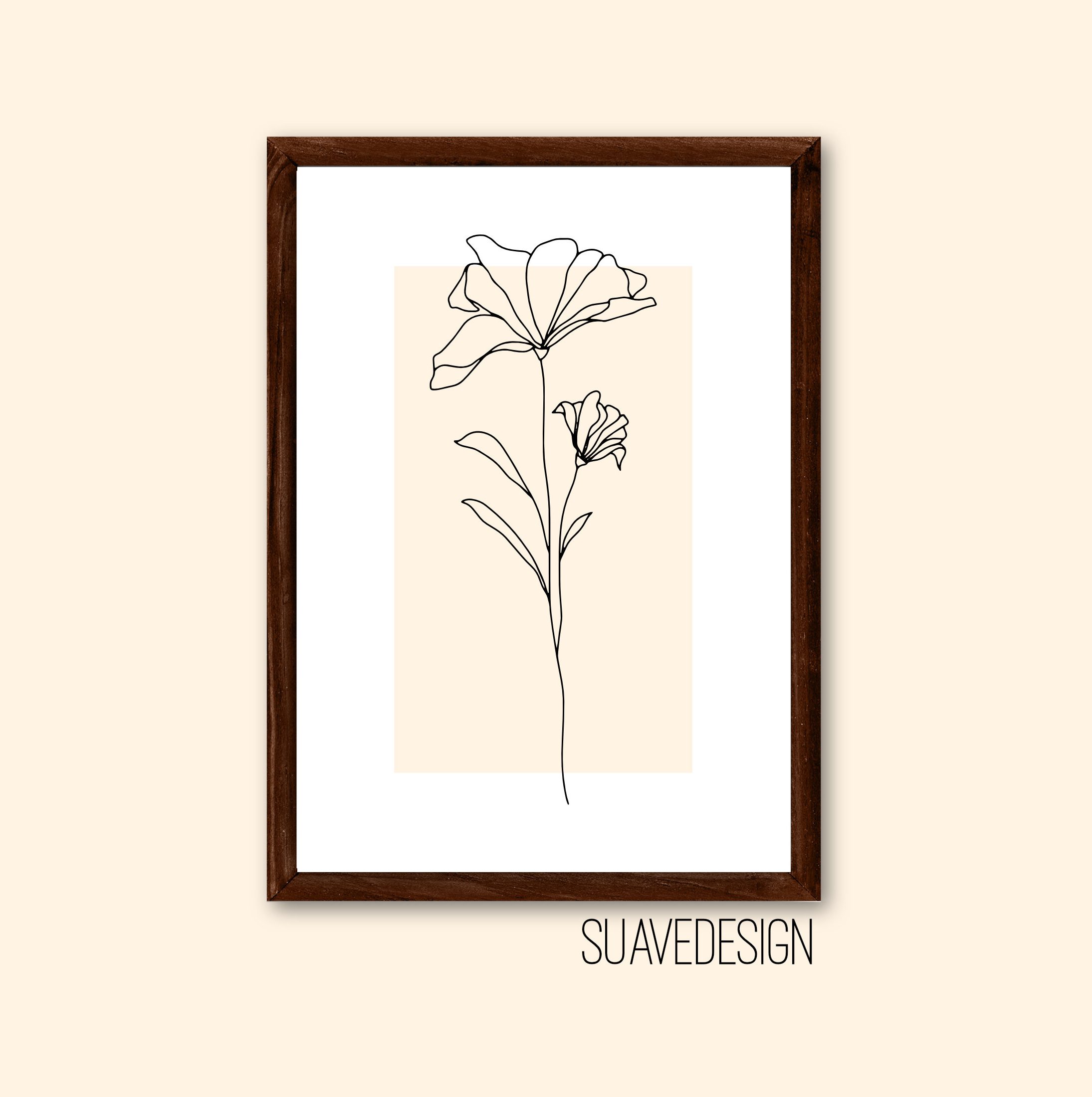 Botanical Floral Line Art Print Wall Art, Home Decor, Trendy Flower Abstract Art Print Unframed Decor